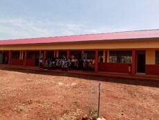 Die Kinder aus Nyinamponase und umliegenden Dörfern drängten sich in nur drei Hütten. Ein provisorischer Anbau mit undichtem Dach, ohne Fenster und Türen, sollte zusätzlichen Platz schaffen – ein Zustand, der bei Regen den Unterricht unmöglich machte.